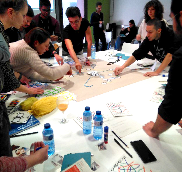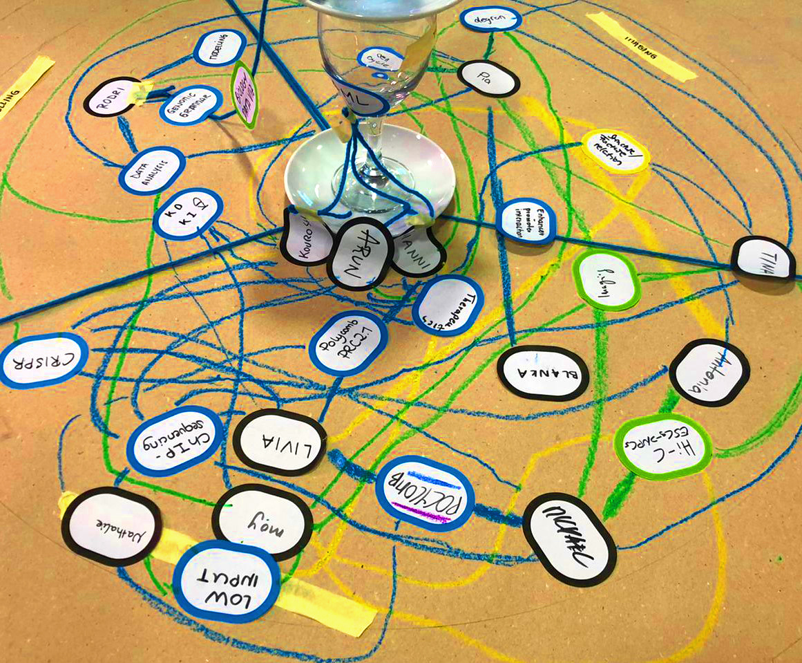 ChromDesign is an interdisciplinary network of 10 European academic and private institutions whose aim is to characterize how 3D chromatin organisation affects gene regulation during cellular differentiation and in several human disorders. It includes 13 research projects in imaging, cell biology, genomics and communication. I designed and performed a creative session for the ChromDesign Winter School that helped the scientists define the complexity of the whole project, as well as their roles in it and their interactions.